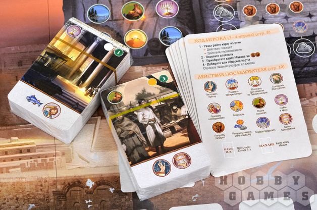 Вы поведёте свою общину, добывая припасы, изучая притчи и стремясь занять лучшие места за столом рядом с Иисусом. Однако путь к вечере непрост: каждый ход вы разыгрываете карты, выбирая цепочку действий, которая позволит привлечь апостолов и получить ценные бонусы.
