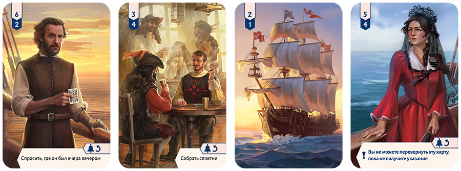 Каждый ход вы решаете, какую карту исследовать: потратить действие на допрос подозреваемого или бесплатно подслушать разговор в трюме. Совещайтесь с другими игроками, стройте версии и следите за эмоциями персонажей – их мимика выдаст больше, чем слова. Помните: время ограничено, и только самые наблюдательные раскроют тайну до подхода к порту!