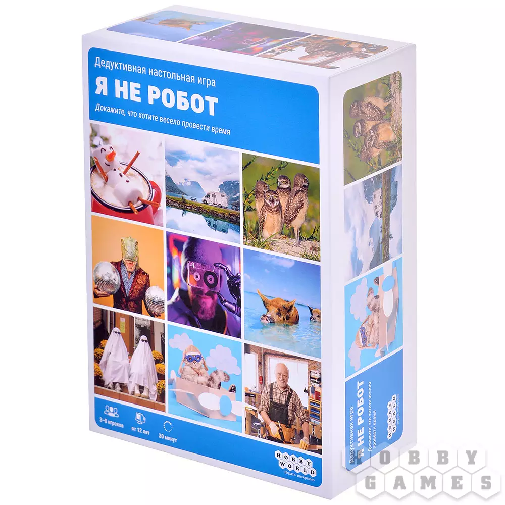"Я не робот" – это простая и весёлая настольная игра для компании от 3 до 8 человек, в которую можно быстро сыграть на вечеринке с друзьями или в небольшом семейном кругу. Каждый из игроков остаётся самим собой – человеком, в то время как один из них становится роботом. Но кому досталась это роль, не знает никто, кроме самого робота. Всем участникам будет загадано одно из нескольких изображений, прямо как в настоящей капче, вот только роботу изображение будет неизвестно.