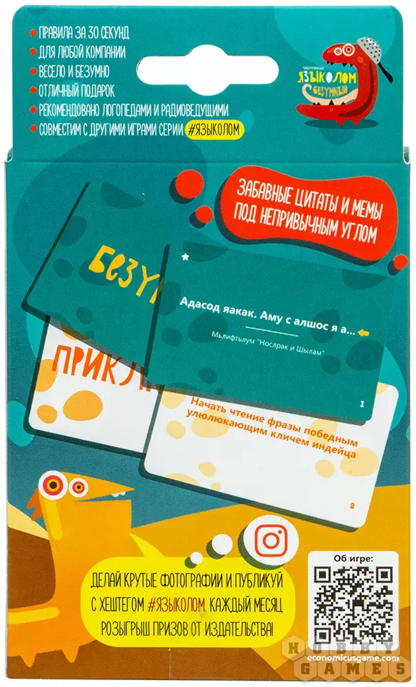 В этой игре вам встретятся и фразочки, заимствованные из латыни, и малоизвестные, но достаточно смешные цитаты, и даже новомодные мемы. Все они записаны нетривиальным образом, кроме того для всех них имеются разнообразные правила произношения. Эта настольная забава абсолютно точно доставит вам удовольствие и незабываемое веселье при игре как в компании, так и в семейном кругу. Все входящие в комплект карты можно смешивать с другими играми серии.