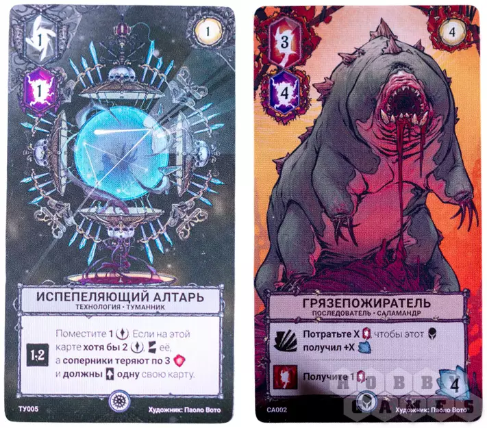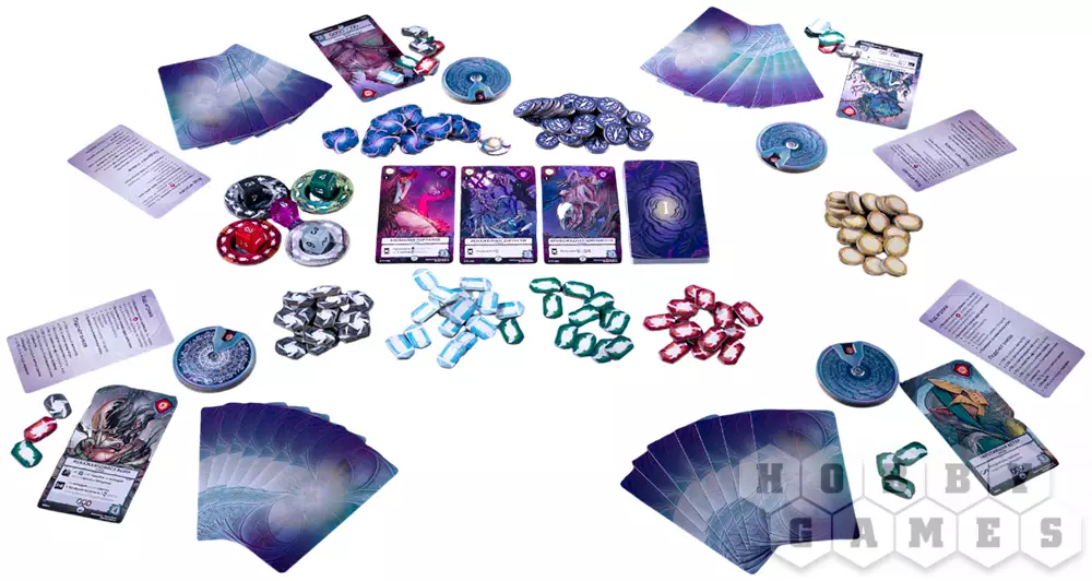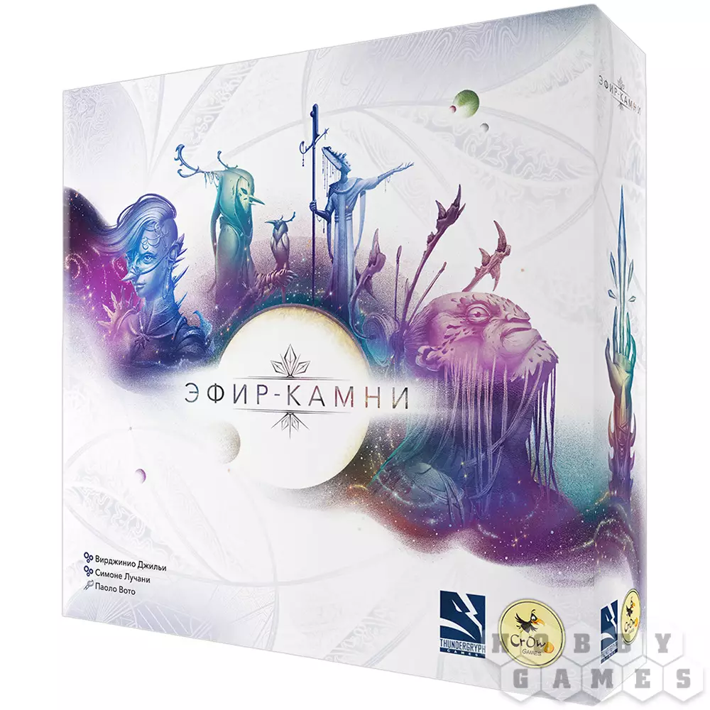 "Эфир-камни" – это карточная игра, в которой вы перевоплощаетесь в вождя, чья воля определяет судьбу целого народа на Нобуре. Партия начинается с драфта 7 карт. В свой ход игрок выполняет одно действие: призывает сущность за эфир-камни, разыгрывая карту из руки; атакует существо в общей области угроз или готовится к атаке; забирает кубик с общего рынка, получая эфир-камни его цвета и, возможно, применяя свойства карт; или заключает сделку с Бездной. Игра будет длиться вплоть до выполнения условия окончания, а когда пыль битвы уляжется, победит не просто сильнейший в схватке, а самый проницательный стратег, сумевший обратить ход игры в победные очки.