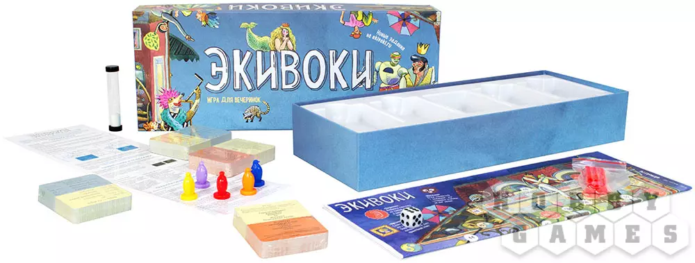 Перед вами "Экивоки", обновлённое 3-е издание. Это популярная настольная игра, в которой вы сможете проявить свою эрудицию, сообразительность, певческие и многие другие таланты. В ней появились новые мемы и пасхалки, на 40% обновились задания, а игровое поле позволяет сыграть в "Найди 100500 отличий"!