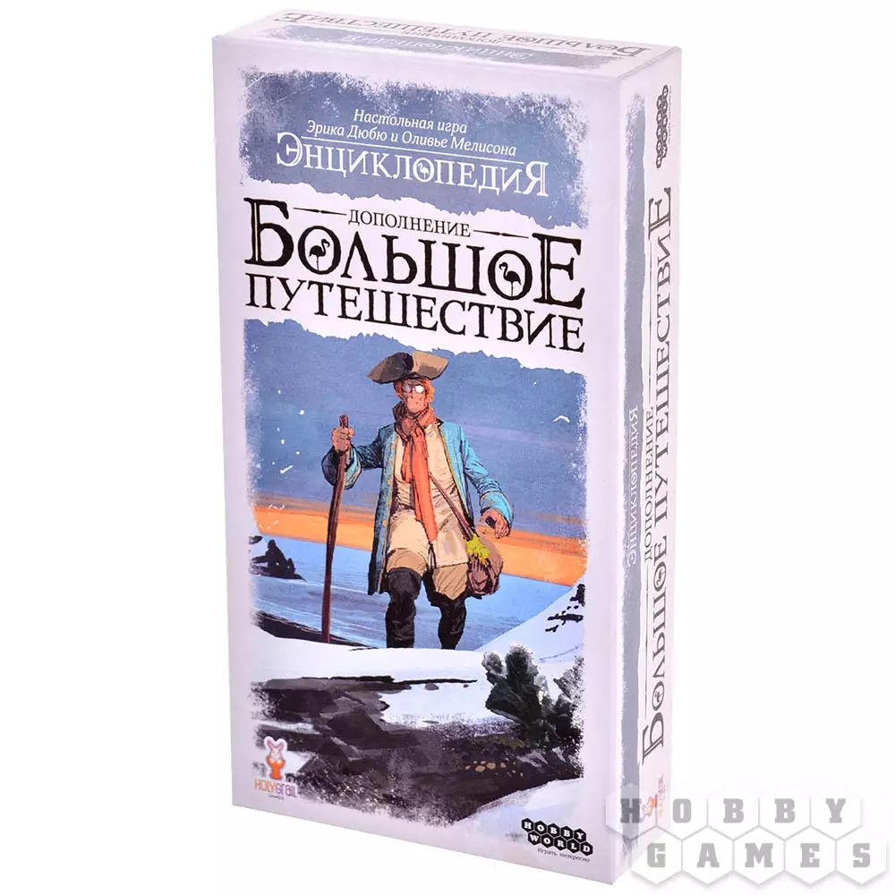 Дополнение "Большое путешествие" делает "Энциклопедию" ещё более вариативной! Оно привносит в игру 3 модуля, которые расширяют базовую игру, чтобы ваши грядущие путешествия стали ещё более непредсказуемыми: карты новых событий подкинут вам тяжёлые испытания, за преодоление которых вы будете щедро вознаграждены, а набор новых экспертов со своими уникальными бонусами позволят реализовать новые стратегии на пути к победе. Ну и, конечно же, без новых карт животных просто не обойтись – странные и легендарные существа ждут, когда вы отправитесь на их поиски!