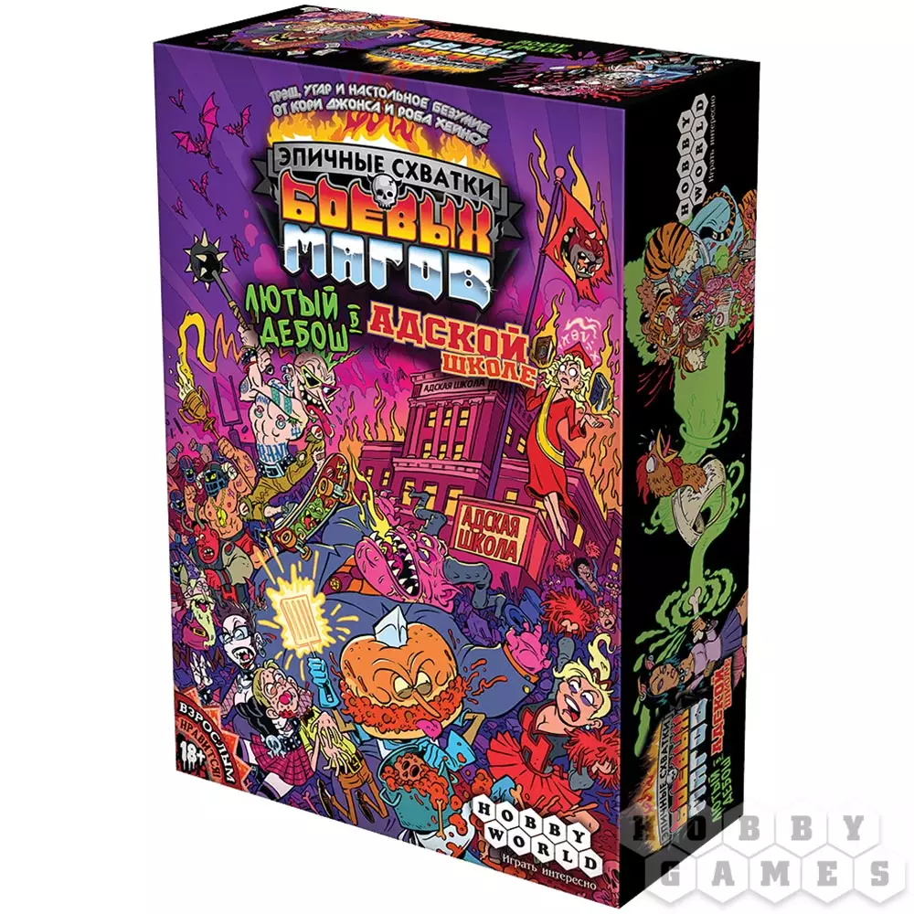 Это самостоятельная игра для 2-6 человек, которую можно смешать с другими частями серии "Эпичные схватки боевых магов" и увеличить тем самым максимальное количество игроков и разнообразие игрового процесса. Внутри коробки – целая жизнь! Новые уникальные персонажи, каждый из которых отчаянно стремиться выжить в этой Адской школе жизни, прелести внеурочной деятельности, пьянки с друзьями, унижение лузеров и, конечно, еда из школьной столовки (но без родной пиццы с крошевом из сосисок).
