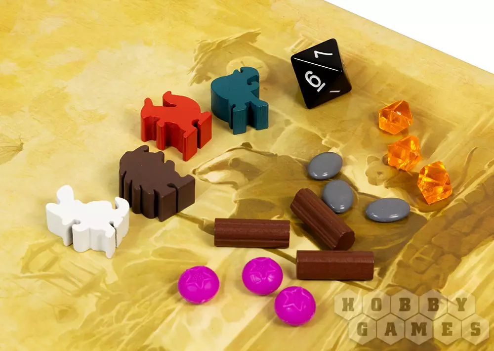 - 105 фишек ресурсов: ягод, веток, смолы и камушков