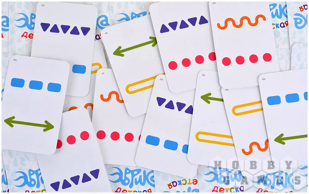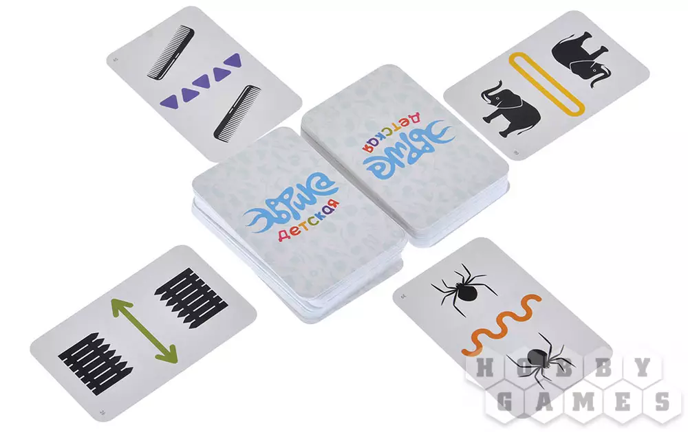 В центре игрового стола выкладываются две колоды карт. Игроки по очереди переворачивают верхнюю карту из стопки и быстро кладут рядом. В первую очередь нужно обратить внимание на цветные символы на картах. Если игрок видит такой же символ, как на своей карте, он смотрит на карту соперника, а точнее, на то, что там нарисовано. Допустим, на его карте нарисовано дерево. Значит, требуется назвать слово на букву "Д". А соперник, в свою очередь, видит, что на чужой карте нарисовано яблоко и вспоминает слово на букву "Я". Кто из двух игроков быстрее назвал правильное слово, тот и себе забирает карту соперника в качестве победного очка. После окончания колоды карты игроков подсчитываются и побеждает тот, кто набрал больше всех очков.