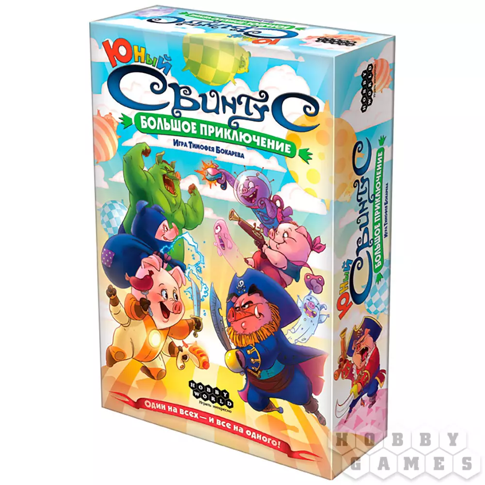 "Юный свинтус. Большой приключение" – это самостоятельное продолжение любимой серии игр. В этом наборе вы найдёте сразу две игры: классический "Юный Свинтус", а также модуль "Большое приключение". Вы сами выбираете, по каким правилам и с какими картами будете играть!
