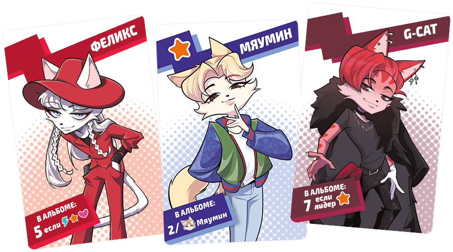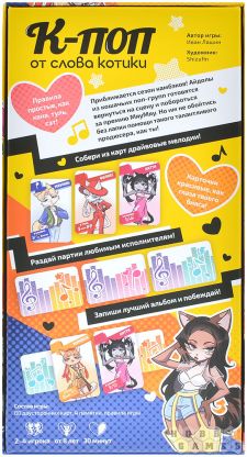 Каждая партия – это настоящее шоу: собирая карты с котиками-айдолами и комбинируя их с картами музыкальных партий, вы создаёте идеальные поп-композиции, решая, чья группа окажется на вершине чартов. Игра идеально подходит для весёлых дружеских встреч – динамичный геймплей не даст заскучать, а очаровательные персонажи на картах не оставят равнодушными ни поклонников к-попа, ни любителей милых котиков.