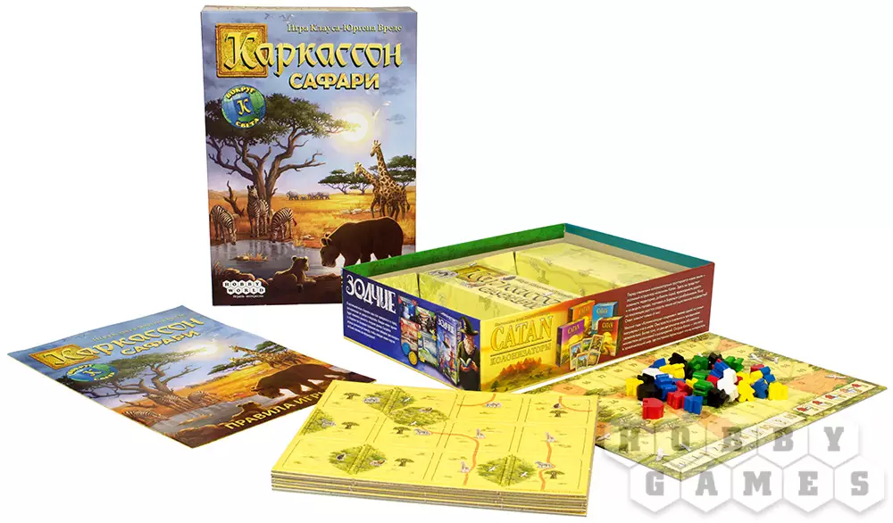 “Каркассон Сафари” – это полностью самостоятельная игра в серии “Каркассон”. На этот раз мы с вами перемещаемся на новый континент – в жаркую Африку, в бескрайний зной саванны. Здесь нам предстоит заняться фотосафари и постараться заснять как можно больше различных животных. Птицы, слоны, зебры, жирафы и львы – чем больше, тем лучше. Животных можно найти буквально повсюду – но, как обычно, рабочих рук (фотоохотников) мало, так что придётся использовать все ресурсы максимально эффективно. Исследуйте мир саванны дружной компанией!
