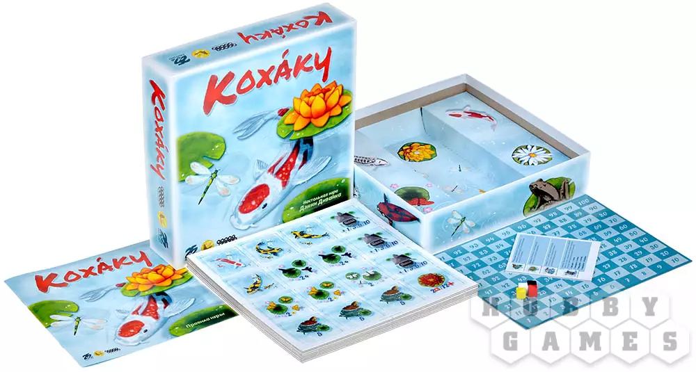 В настольной игре "Кохаку" вам предстоит создать собственный пруд. Поселить в нём одних только кои будет недостаточно, ведь эти рыбки любят соседство с другими водными обитателями: скрасьте их присутствие добрыми черепашками и лягушками, украсьте водную гладь прекрасными лилиями, а по берегам пруда установите красивые статуи. Игра соревновательная, каждый элемент вашего водоёма будет приносить победные очки, и чем гармоничнее вы будете размещать элементы, тем больше очков получите. Подходите с умом к подбору декоративных элементов и создайте самый красивый пруд!