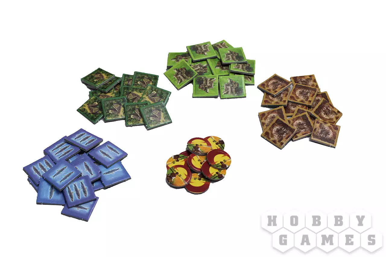 Hobbygames08.09.2014 14:11В начале выкладываются две реки, отбираются : 2 гекса Гор, 2 гекса Холмов, 2 гекса Пастбищ, 1 Пустыня а остальные клетки заполняются чем угодно.