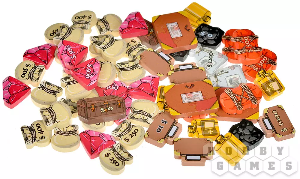 34 картонных жетона добычи