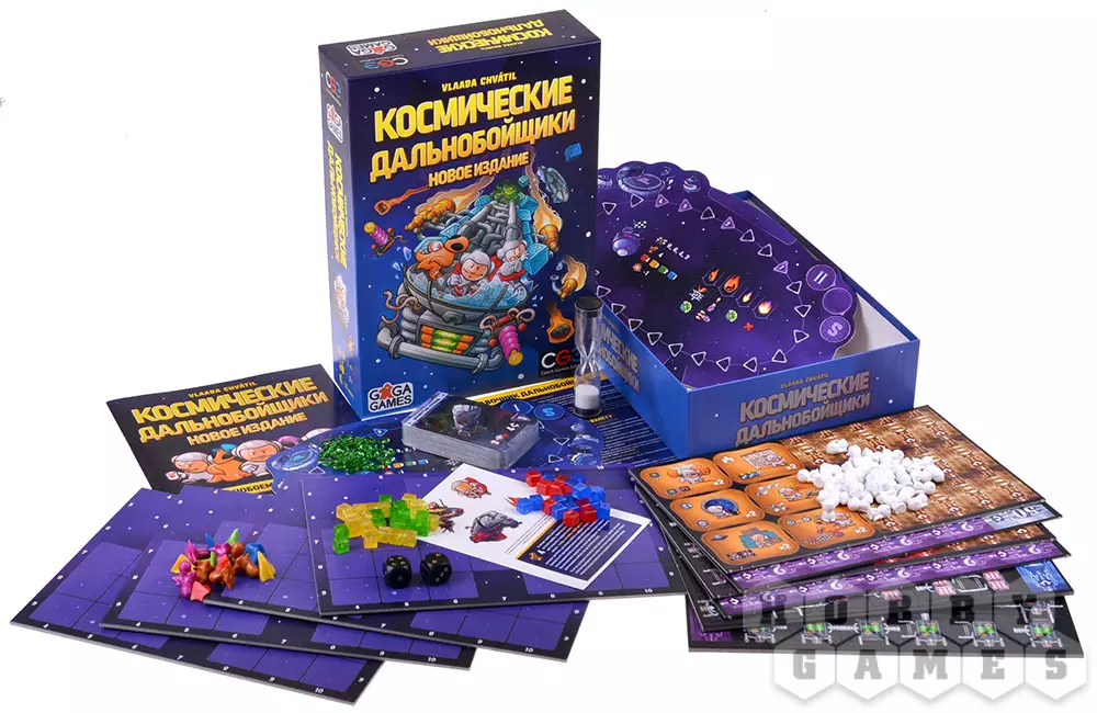 В настольной игре "Космические дальнобойщики" вам предстоит отправиться в путешествия по просторам бескрайней вселенной: мотаться из одной системы в другую, доставлять всякое разное, ну и, конечно же, зарабатывать денежки! Но прежде чем отправиться в полёт, вы должны построить свой собственный космический корабль. Деталей целая куча, причём буквально! Но чтобы собрать что-то стоящее, придётся немного покопаться: не всякая деталь сгодится для сборки, так ещё и конкуренты расхватывают нужные детали... Короче, поторопитесь и будьте готовы ко всему.