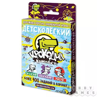 Кто не знает старого доброго "Крокодила"?! Действительно, эта игра известна всем, ведь она очень увлекательна и имеет весьма простые правила. Необходимо давать объяснения словам таким образом, чтобы другие игроки смогли вас понять. С момента выхода классической игры свет увидели различные вариации и издания, и вот перед вами специальная "детсколёгкая" версия игры. Она специально адаптирована, чтобы даже самые юные игроки могли участвовать вместе со взрослыми. Также необходимо отметить компактные размеры, благодаря чему игра станет отличным аксессуаром в дорогу или для похода в гости.