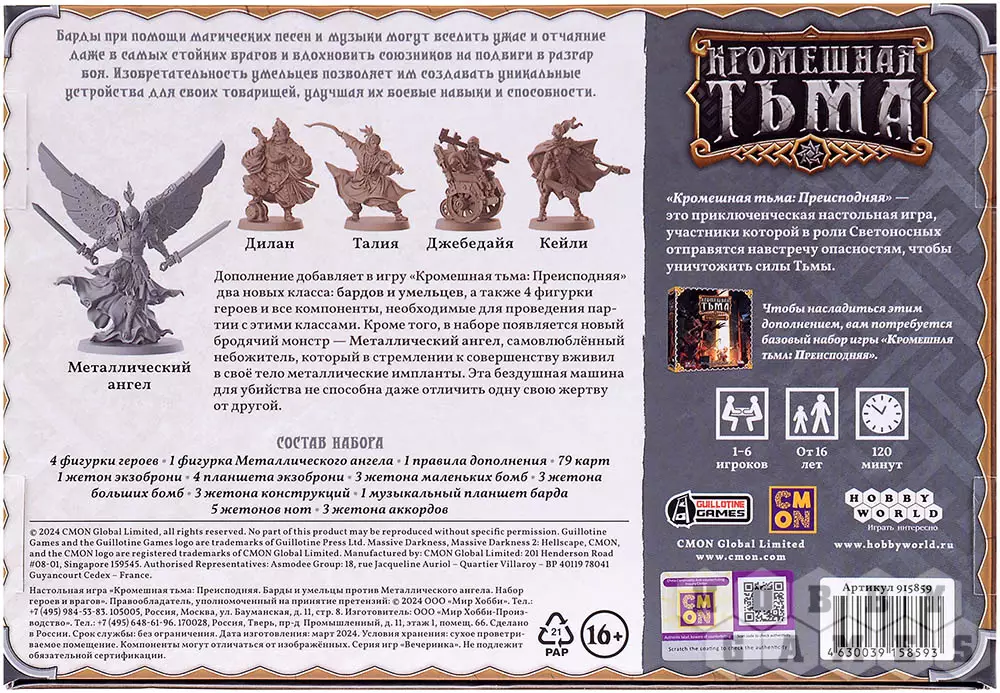"Барды и умельцы против Металлического ангела" добавляет в игру два новых класса: бардов и умельцев. Также в комплект входят четыре фигурки героев и все необходимые компоненты для проведения партии с этими классами.
