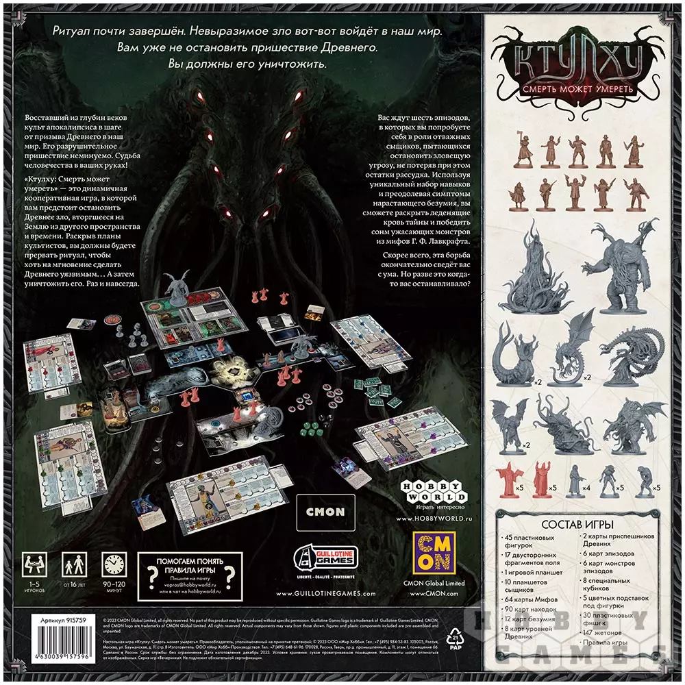 "Ктулху. Смерть может умереть" – это динамичная кооперативная игра в сеттинге мифов Лавкрафта, которая сильно отличается от других представителей жанра. Вам предстоит перенестись в 1920-е годы, стать отважными и немного сумасшедшими сыщиками, которые вместо обычного расследования решают биться с самим Древним! Чтобы победить, придётся как следует подготовиться.