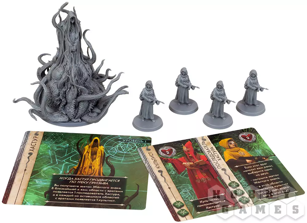 Также следует отметить качество компонентов и особенно игровых миниатюр – такой Ктулху на поле действительно внушает страх!