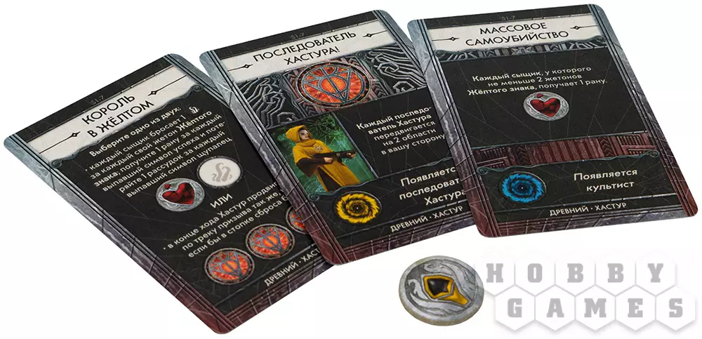 Игра содержит шесть различных сценариев и двух Древних, которым вы сможете бросить вызов: это Хастур, Король в жёлтом, и, конечно, Ктулху! Каждый сценарий предлагает оригинальное приключение, которое можно разыграть с любым Древним. Таким образом, у вас получается двенадцать уникальных сочетаний: сценарий задаёт свою карту игрового поля (здесь оно модульное), содержит описание конкретного ритуала, который нужно прервать, а также его последствий; описание двух дополнительных действий для сыщиков; содержит набор карт находок, Мифов и т. д. Древние отличаются культистами и монстрами, с которыми предстоит столкнуться сыщикам; своей силой и особенностями.