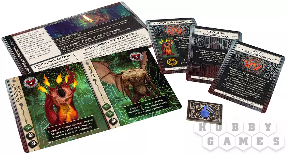 Исследование или сражение – в эту фазу вы либо берёте карту из колоды находок, которая двигает вас по сюжету, либо, если вы находились в локации с врагом, дерётесь с ним