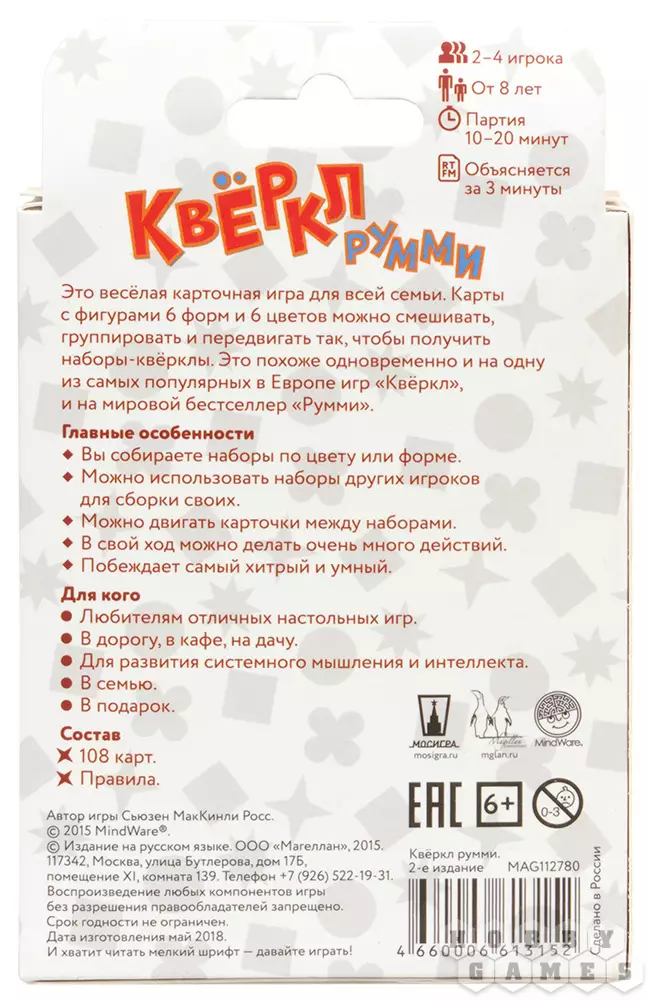 Эх, набрать бы квёрклов побольше! А что это? Это название настольной игры – "Квёркл Румми", а также условие победы в ней. Но как создать квёркл? Собираете шесть разных карт с одинаковыми фигурами или одинакового цвета и квёкрл у вас в кармане!