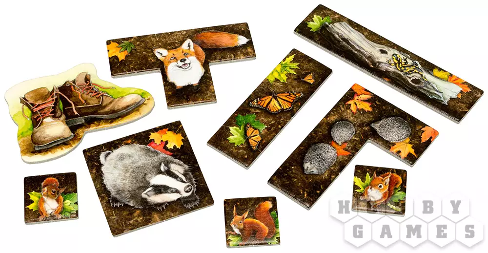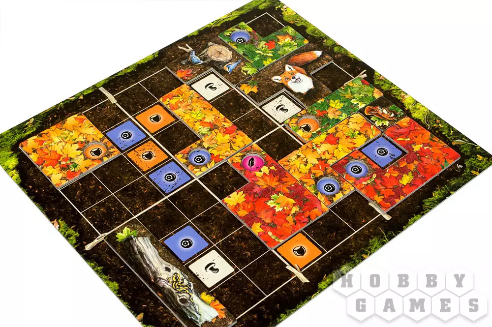 Каждый игрок получает по планшету земли, разбитому на шесть секторов, а всё пространство в целом разлиновано на клетки. На некоторых клетках изображены сокровища. Ваша задача на игру – заполнить всё свободное пространство жетонами листвы, белок и животных. Каждый жетон обладает своей формой, причём на некоторых из них присутствуют отверстия.