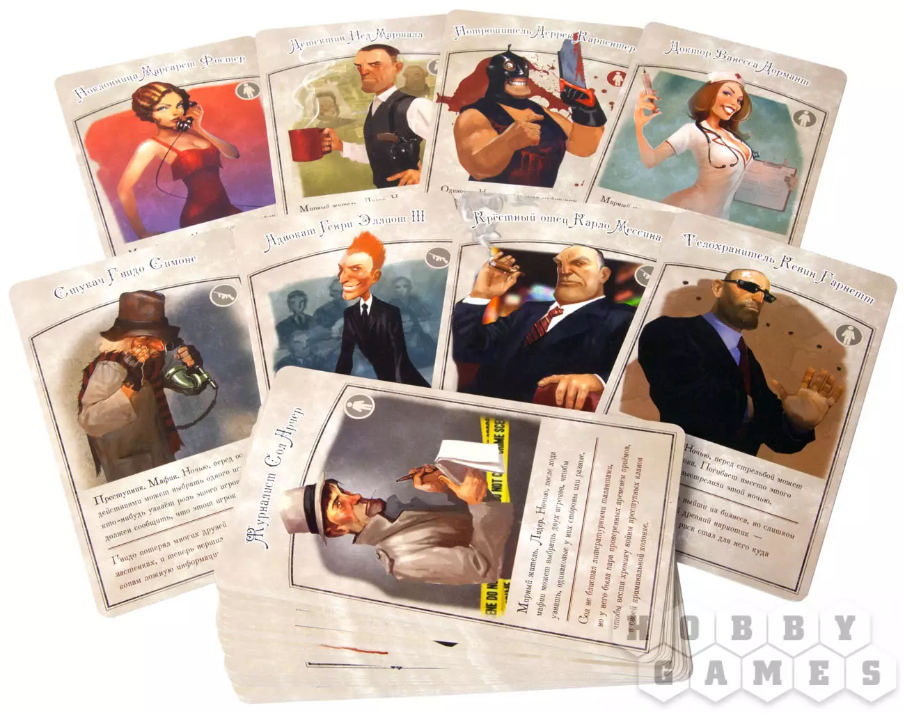 Mr.X30.08.2013 19:49Согласен и ещё чёрный доктор , хохол , путана , камикадзе , старейшина , бессмертный , киллер , ниндзя , ревнивец , насильник , психопат , отморозок , отравитель , фанатик , хакер , некромант , донор , реанимирующий комиссар в конце концов.Это взято отсюда https://ru.wikipedia.org/wiki/%CC%E0%F4%E8%FF_(%E8%E3%F0%E0) пожалуйста добавьте эти карты для суперского разнообразия!И по отзывам я думаю вам надо ещё 5 карт обычных мирных жителей.Спасибо за предоставленное мне внимание! -