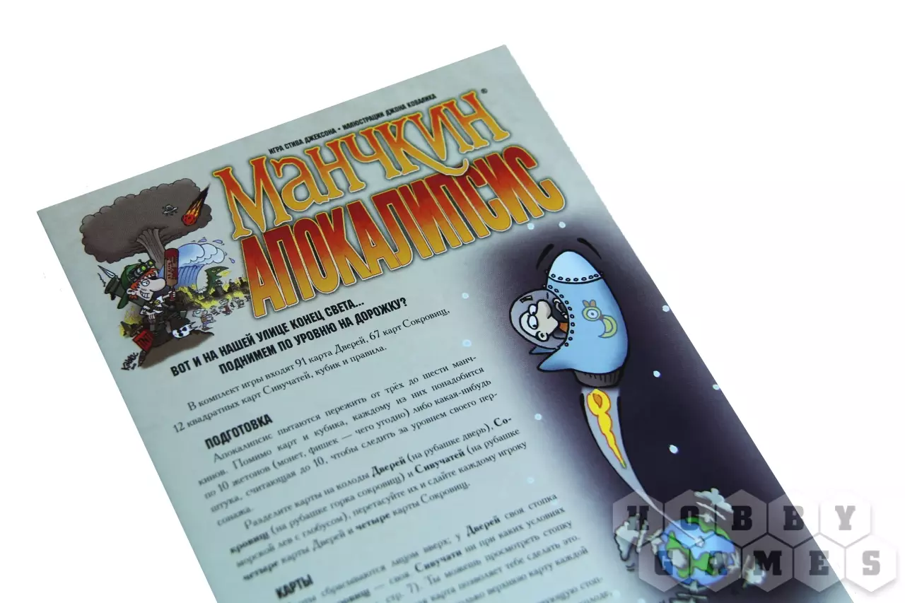 В настольной игре "Манчкин Апокалипсис", полностью независимой от других игр серии, произошли все возможные природные (и не природные тоже) катаклизмы. При желании, вы, как обычно, можете совместить игру с любым другим набором "Манчкина", чтобы сделать партию ещё безумнее… Но, может, пожалеем Землю, она и так уже напоминает одну большую пустошь, где вы – один из тех стойких, выживших в этом умирающем мире, полном людей (и всяких других странных штуковин), которые только и хотят убить вас да захапать все ваши Шмотки. Что?.. Да не бывать этому!