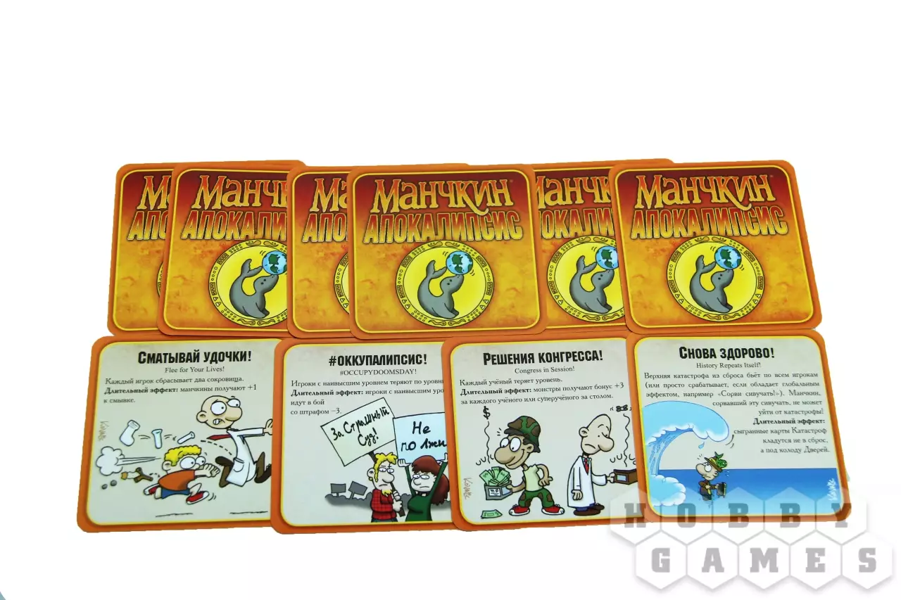 Михаил16.01.2013 21:32Отличный реролл оригинального Манчкина с небольшим усложнением в виде карт глобальных эффектов печатей апокалипсиса ("Сивучатей", слава надмозгу! В Манчкине без игры слов никуда:), и симметричным упрощением в виде отсутствия "расы". Особенно рекомендую любителям весёлой апокалиптики а-ля Зомбиленд, так как текст карт очень юморной.