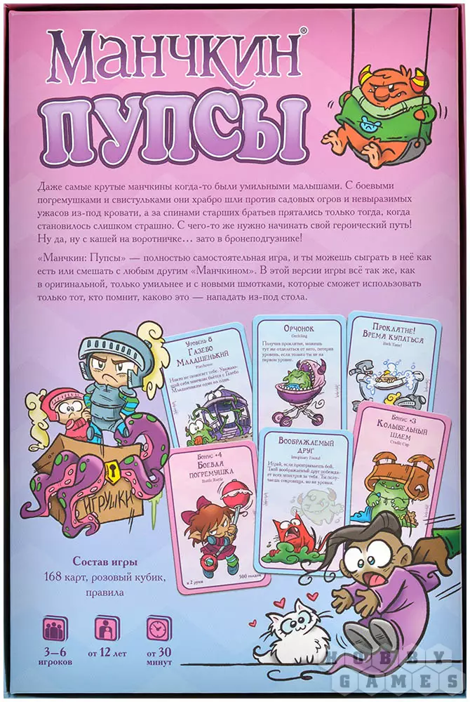 "Манчкин: Пупсы" – самостоятельная игра. Играй в неё как есть или смешивай с другими наборами как душе угодно.