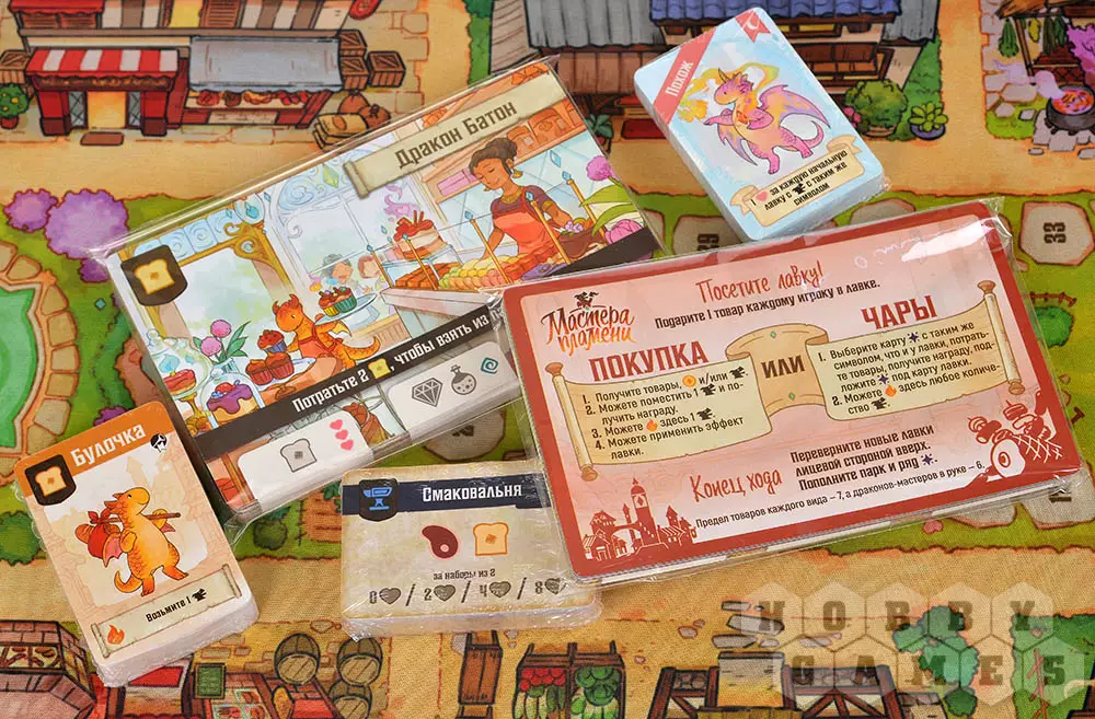 "Мастера пламени" – это уютная стратегическая игра для всей семьи. Вам предстоит стать покровителем драконов-ремесленников, подбирать им идеальные лавочки и помогать творить чудеса. Для этого нужно будет размещать своих хвостато-крылатых подопечных в мастерских, активировать их уникальные способности и накладывать заклинания, чтобы получать ценные ресурсы и повышать свою репутацию. Каждый ход – это выбор: собрать награды здесь или сейчас или вложить их в дальнейшее развитие, чтобы создать ещё более мощную комбинацию?