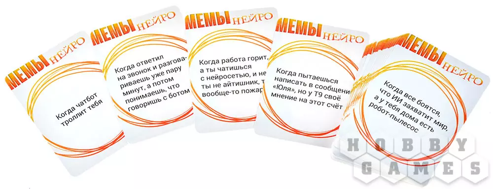 Встречайте четвёртую по счёту часть популярной вечериночной игры из серии "Мемы"! В этой игре вас ждут любимые картинки-мемы и ситуации, переосмысленные нейросетями. Тематический сет из сотни обыденных (и не очень) моментов нашей жизни: AI, IT и восстание роботов. Как вы могли бы выглядеть, скажем, в ту секунду, когда только собрались приступить к работе, а умные часы говорят, что нужно сделать перерыв? Или какой будет ваша реакция, когда спрашиваешь у искуственного интеллекта, не собирается ли он захватить мир, а он отвечает: "Мммм... хорошая идея!".