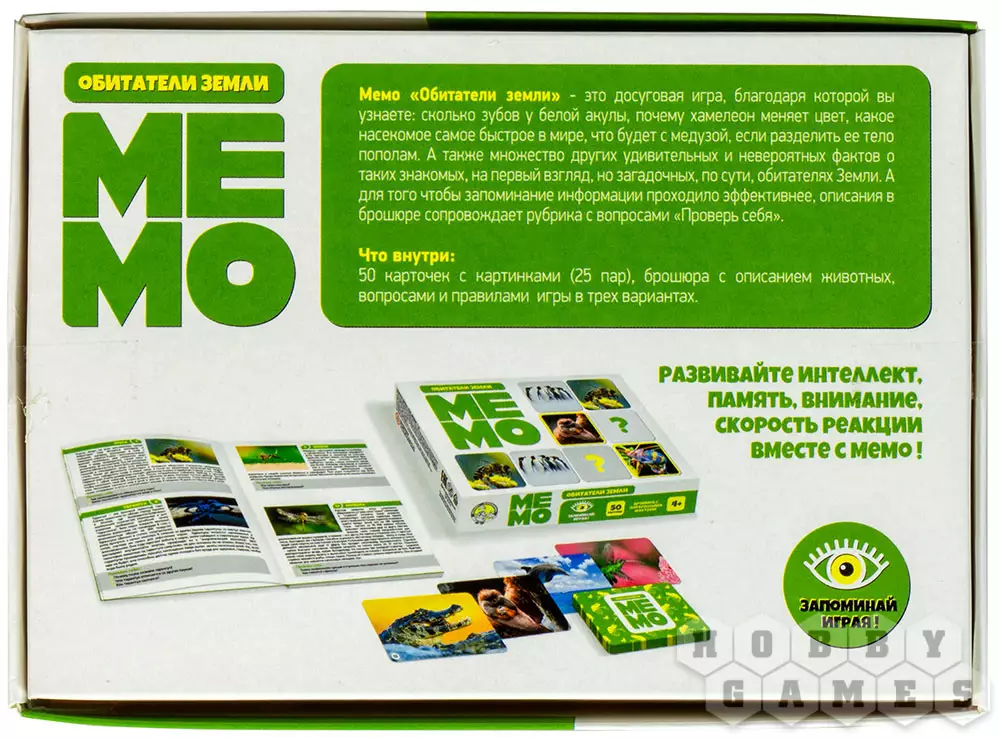 Перед вами "Мемо" – настольная игра для всей семьи. Эта игра на самом деле интересная и, что немаловажно, удивительно полезная! Вечер в большой или маленькой компании с такой игрой пролетит незаметно! Наверняка, вы станете поклонником "Мемо", сыграв всего лишь раз.