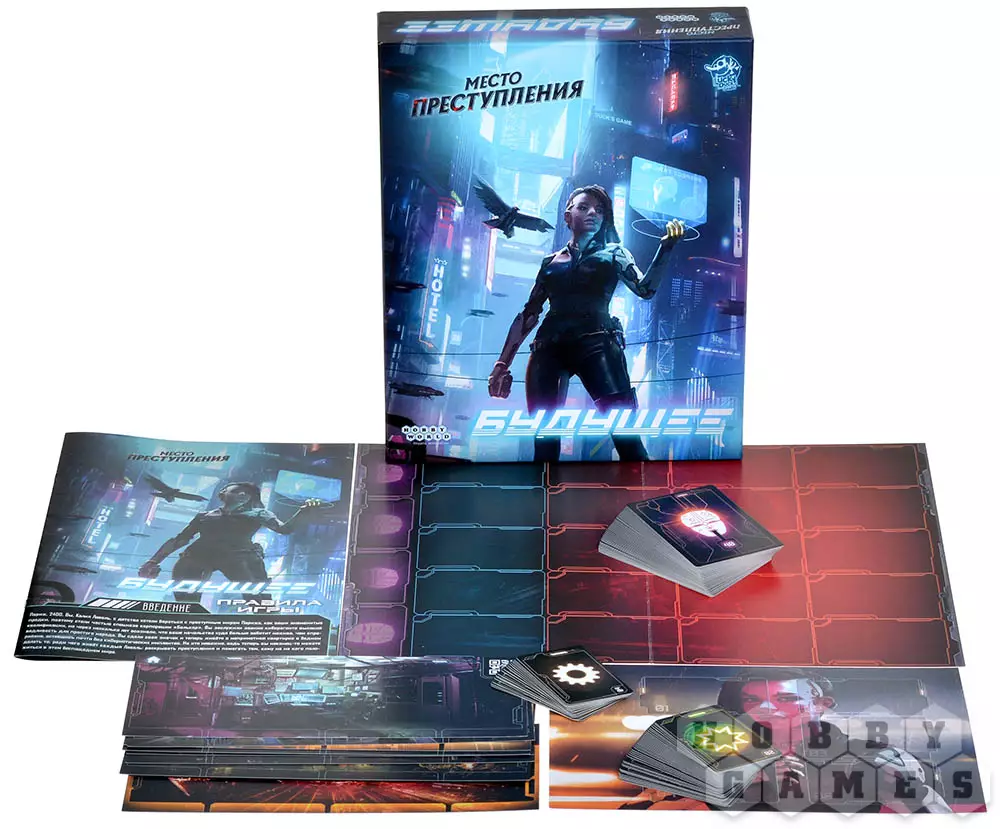 Настолка "Место преступления: Будущее" – новинка из серии игр “Место преступления” в стиле киберпанк. Охотьтесь на преступников в реальном и виртуальном Париже, при помощи имплантов находите нужную вам информацию и раскрывайте заговоры корпораций. Основная задача проста: найти преступника, пока время ещё не истекло!