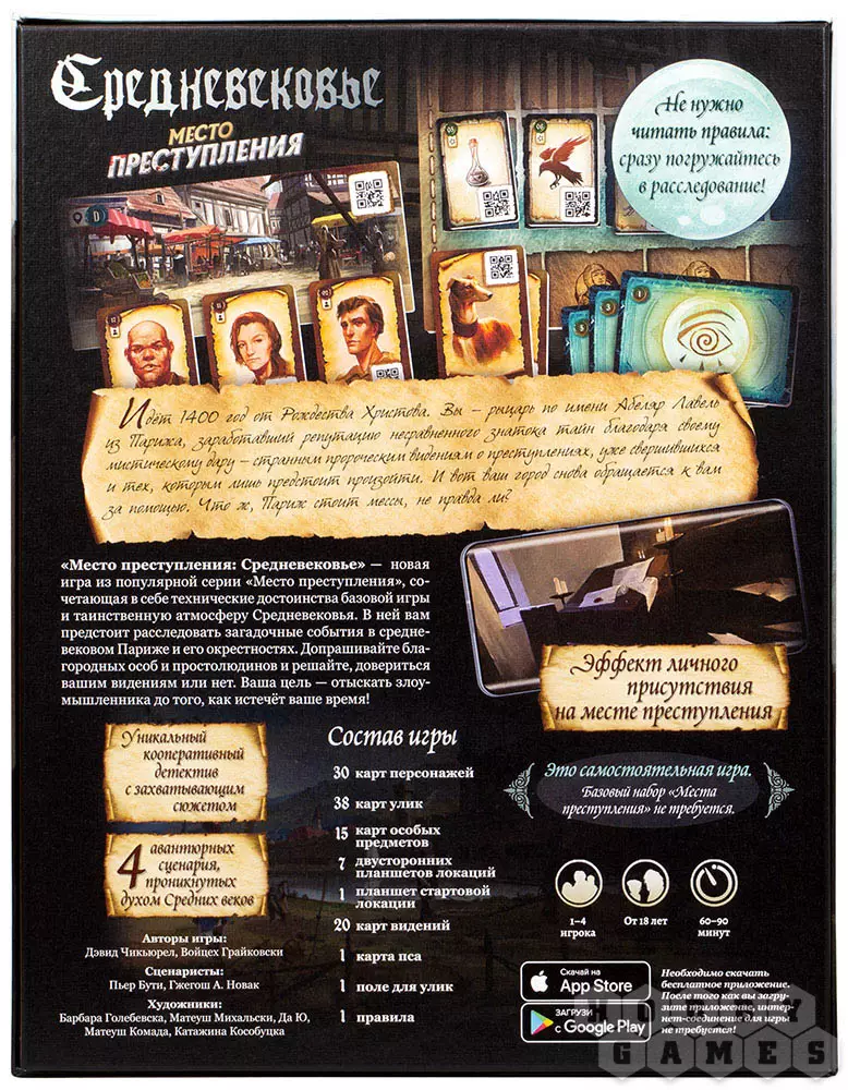 Екатерина09.03.2021 18:26Купили игру вчера, успели уже пройти сюжет про омовение. На самом деле застопорились еще на обучении, так как захотели быстрее поиграть и не прочитали внимательно инструкцию. Не могли понять как зафиксировать улики. Но когда поняли, то принялись за один из 4 сюжетов. Я считаю, что подобные игры это новое слово в сфере настольных игр. Игра, в которой вы через мобильное приложение сами решаете куда пойти, с кем и о чем говорить. А виар сцены до конца погружают в атмосферу игры и дают почувствовать себя настоящим детективом! Ставлю игре 10/10, жду новые релизы!