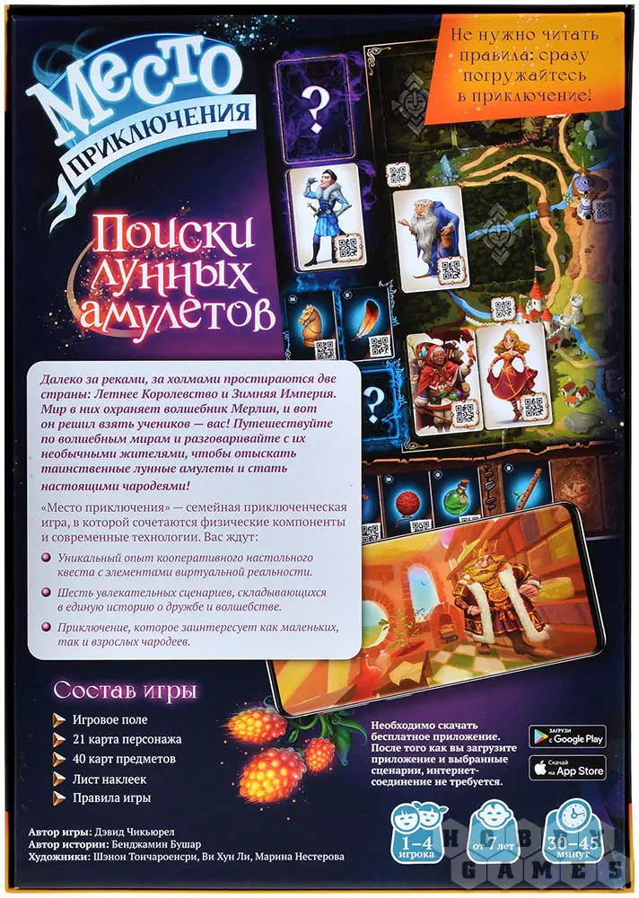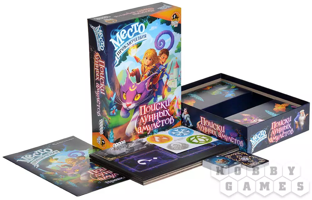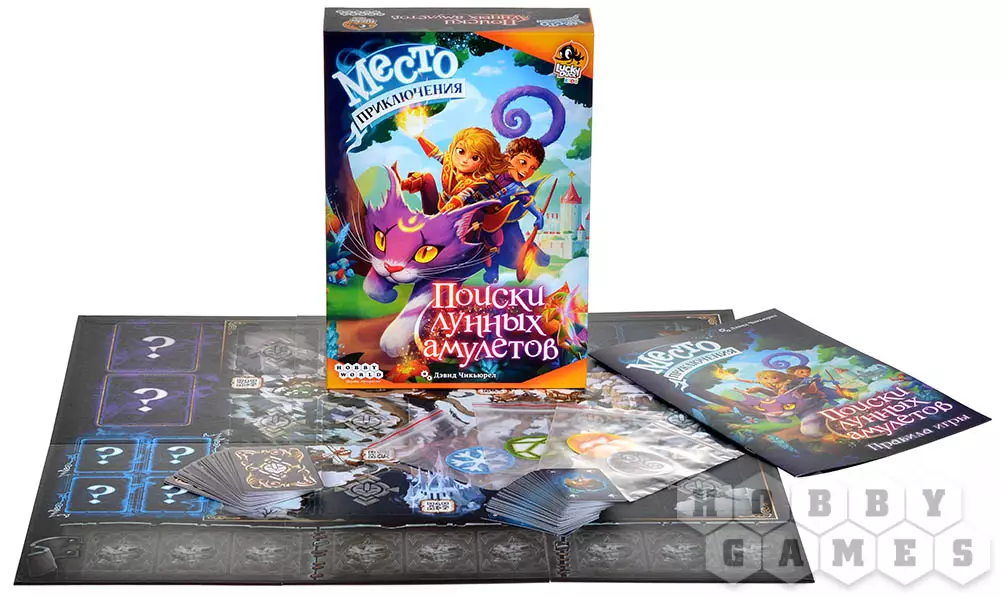 "Место приключения: Поиски лунных амулетов" – это увлекательное приключение для всей семьи, в котором гармонируют традиционные игровые компоненты и новейшие технологии. Вас ожидают: