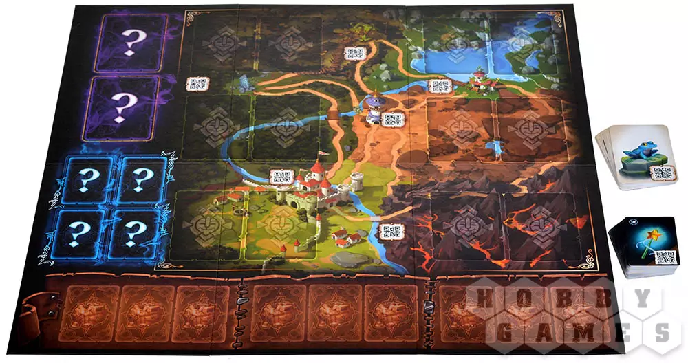 Разместите игровое поле в середине стола, а карты персонажей и предметов разложите рядом согласно правилам. Волшебство начнётся, как только вы запустите специальное приложение для игры. В нём вы можете выбрать наиболее приглянувшийся сценарий. Для начала было бы неплохо понять суть игры, и в этом вам поможет "Магическое обучение".