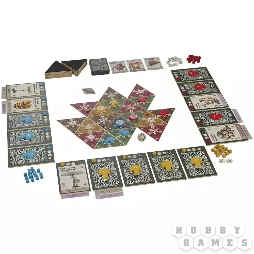 "Мицелий" – это стратегическая настольная игра о соперничестве грибных царств за контроль над лесом и ресурсы. В этой игре вам предстоит построить свою собственную грибницу, разбрасывать споры, выращивать грибы и защищать свои территории от противников. Грибы, с виду милые и безобидные, на самом деле ведут ожесточённую борьбу за пространство под землёй, плетя обширные сети мицелия. Ваше задание – эффективно развивать свою грибную империю, но не всё будет под вашим контролем. Споры разлетаются в разные стороны под влиянием ветра, а противники могут блокировать и захватывать ваши участки.