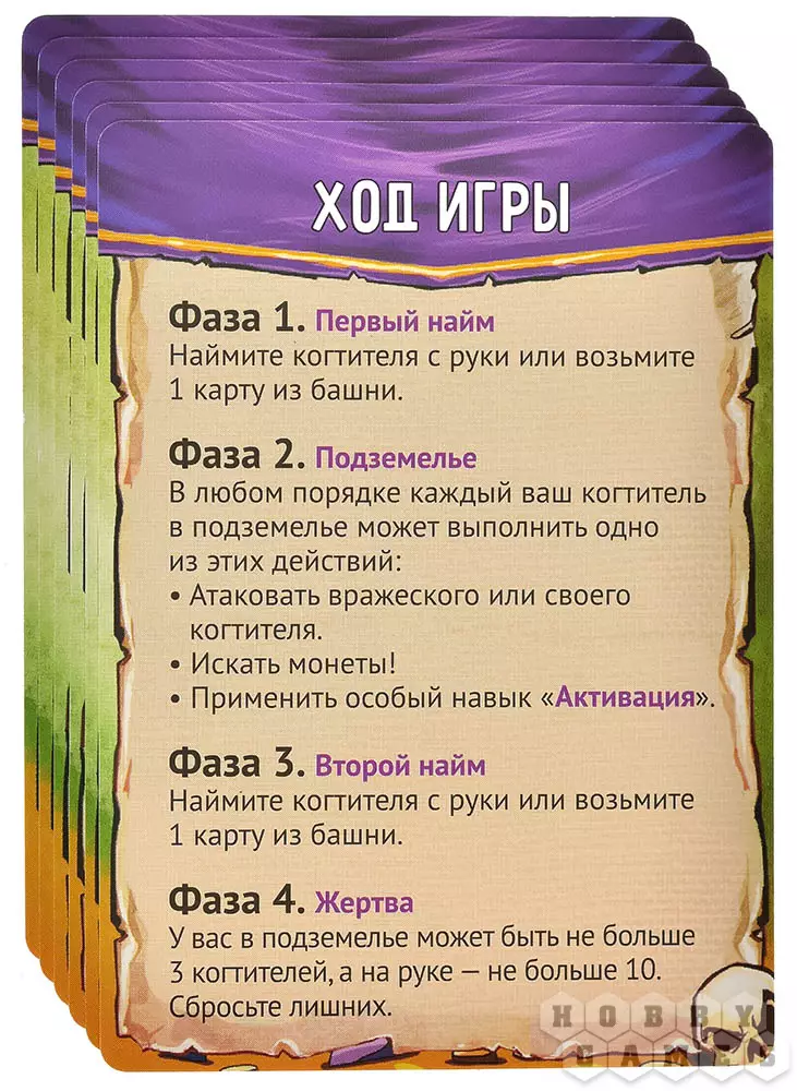 В начале хода вы укрепляете свою команду когтителей, выкладывая новых помощников из руки. Каждого такого союзника нужно обеспечить запасом здоровья, отмечая его специальными жетонами-сердечками. Вместо пополнения команды можно взять дополнительные карты из основной колоды – выбор зависит от текущей ситуации и вашей стратегии.