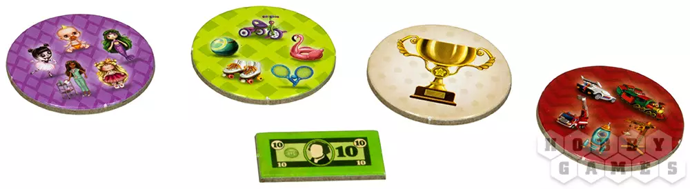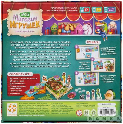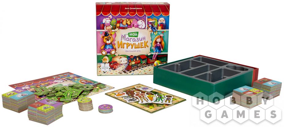 Вы и ваши друзья решили открыть магазины игрушек и посоревноваться, кто получит больше прибыли. Выбирайте себе персонажа, получайте карточку с кассой и начинайте наполнять свой магазин игрушками!