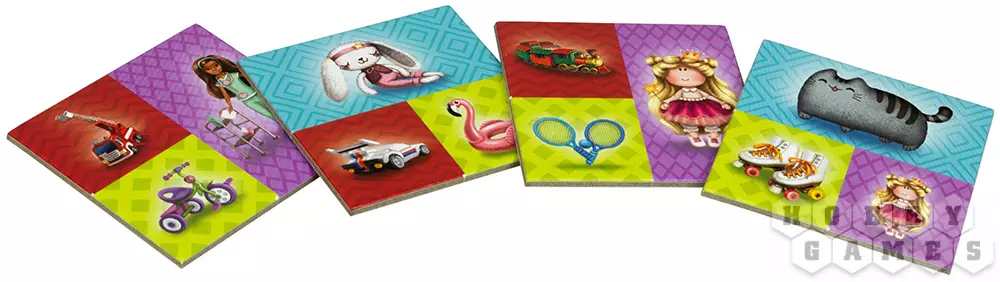 Карточки с областями одного цвета нужно ставить рядом с другими карточками с областями того же цвета, чтобы получить больше прибыли, но не забывайте и про остальные правила. Карточки должны соприкасаться с выложенными ранее хотя бы одной стороной, их нельзя переворачивать, ведь у карточек есть верх и низ. В процессе игры также можно получить награды за пять карточек игрушек одного типа.
