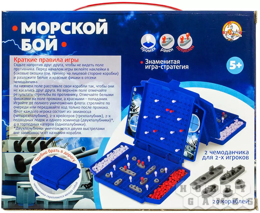 Знаменитая стратегическая настольная игра, прекрасно всем знакомая с детства. Да-да, это тот самый "Морской бой", выполненный в удобном настольном варианте – игровые поля, на которых будут проходить ожесточённые баталии, представлены в виде компактных чемоданчиков, скрепляющихся между собой, которые удобно взять с собой дорогу.