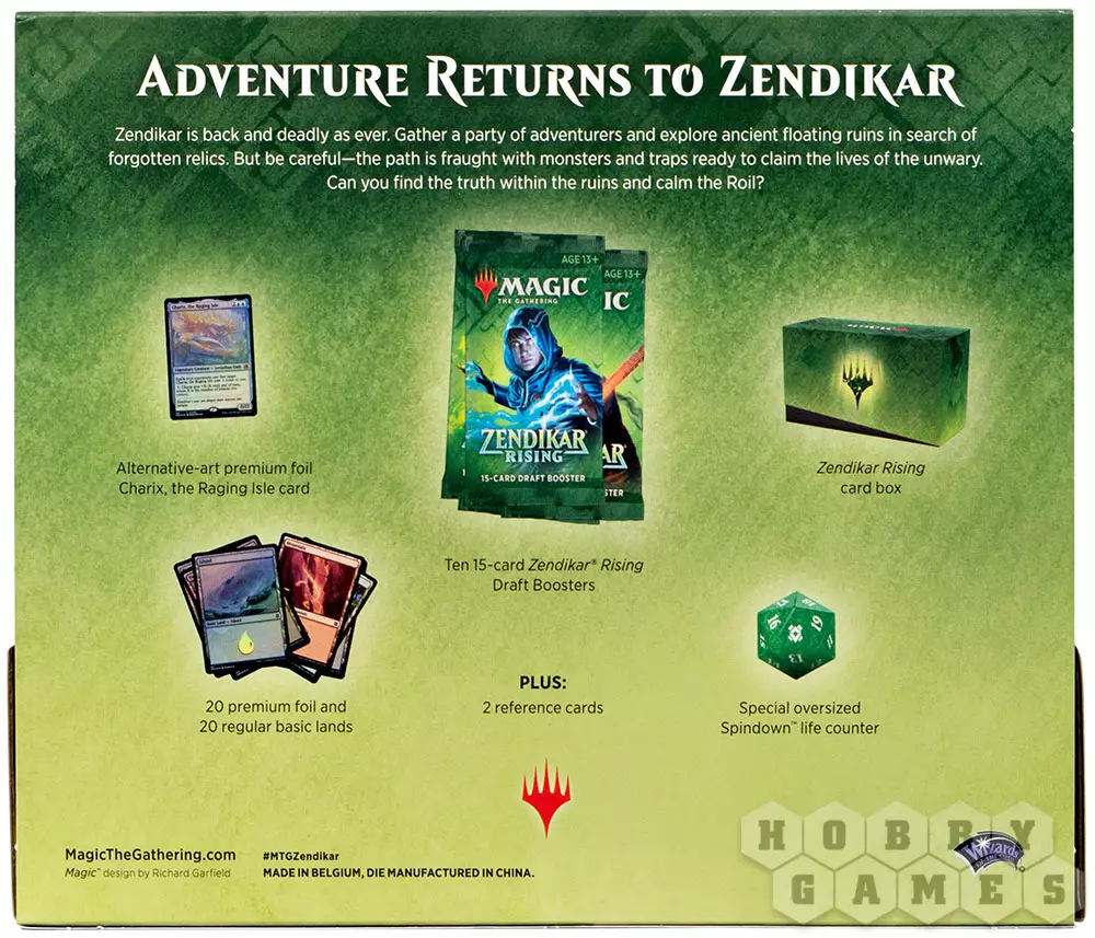 Bundle выпуска "Расцвет Зендикара" включает в себя 10 драфт-бустеров на английском языке. Также внутри вы найдёте большой счётчик жизней Spindown, стилизованную коробку для карт и комплект базовых земель. Наборы Bundle для Magic: The Gathering позволяют быстро и не затратно втянуться в новый выпуск, а также собрать свою первую колоду.