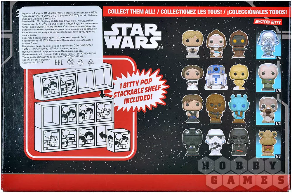 Bitty POP! – дочерняя линейка Funko POP!, в которой представлены уже знакомые почитателям бренда фигурки, только в уменьшенном размере (примерно 2,5 см). Теперь носить любимых персонажей с собой в кармашке стало ещё проще!