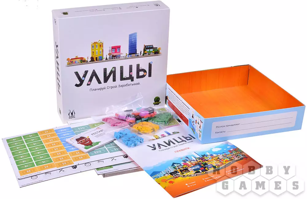 "Улицы" – это градостроительная экономическая стратегия с несложными правилами, которая отлично подойдёт для компании или семьи начинающих настольщиков. Чтобы победить, вам нужно зарабатывать деньги, они выступают в роли победных очков. Бизнес-жетоны и советники с уникальными асимметричными способностями разнообразят игру и сделают финансовое противостояние ещё интереснее.