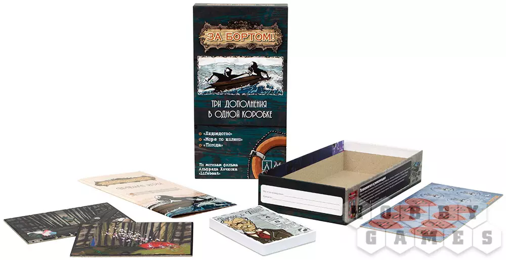 Набор "Море по колено" включает в себя игры "За бортом" и "За бортом! Три дополнения в одной коробке" со скидкой 15%.