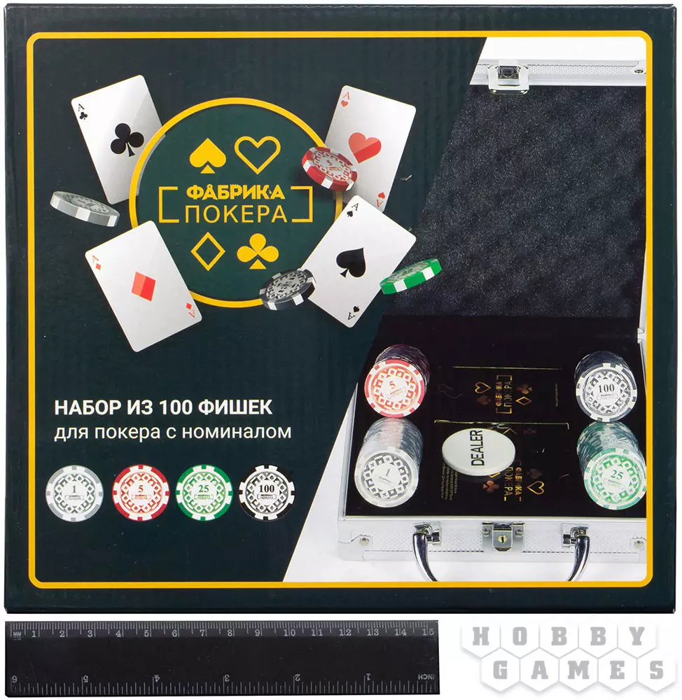 В данном комплекте вы найдёте всё необходимое для игры в классический покер. Внутри вы найдёте 100 стандартных фишек для профессиональной игры (11,5 гр.), фишку дилера, 2 колоды игральных карт, соответствующих качеству карт казино, а также 5 игральных костей. Все компоненты убраны в элегантный и прочный алюминиевый кейс.