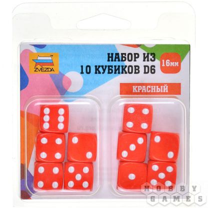 Набор кубиков D6 Zvezda, 10 шт. (16 мм, красные)