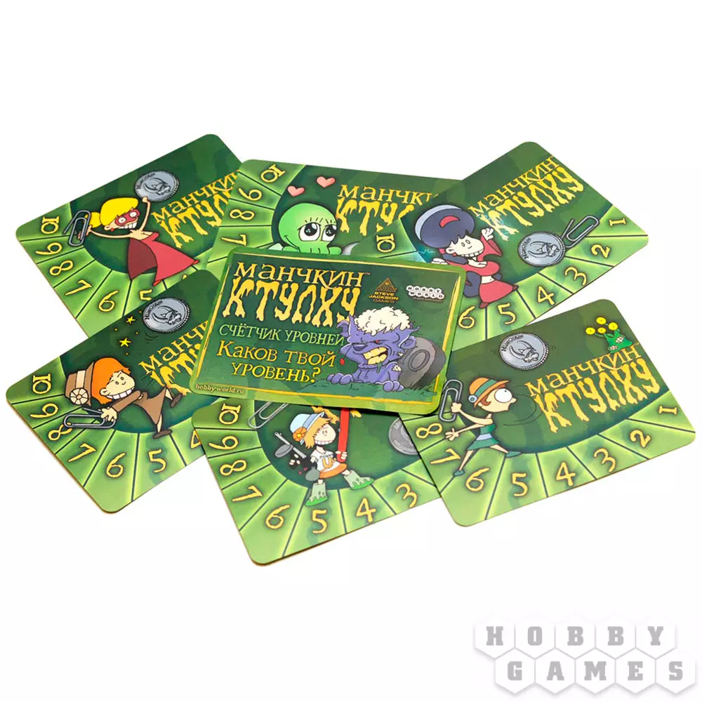 В каждом наборе ты найдёшь шесть уникальных двухсторонних карточек. Отмечай на них свой текущей уровень монетой или скрепкой. А если ты получил проклятье "Смена пола", просто переверни карточку и ты не забудешь об этом.