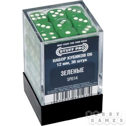 Набор стандартных кубиков D6 Stuff-Pro, 36 шт. (12 мм, зелёные)