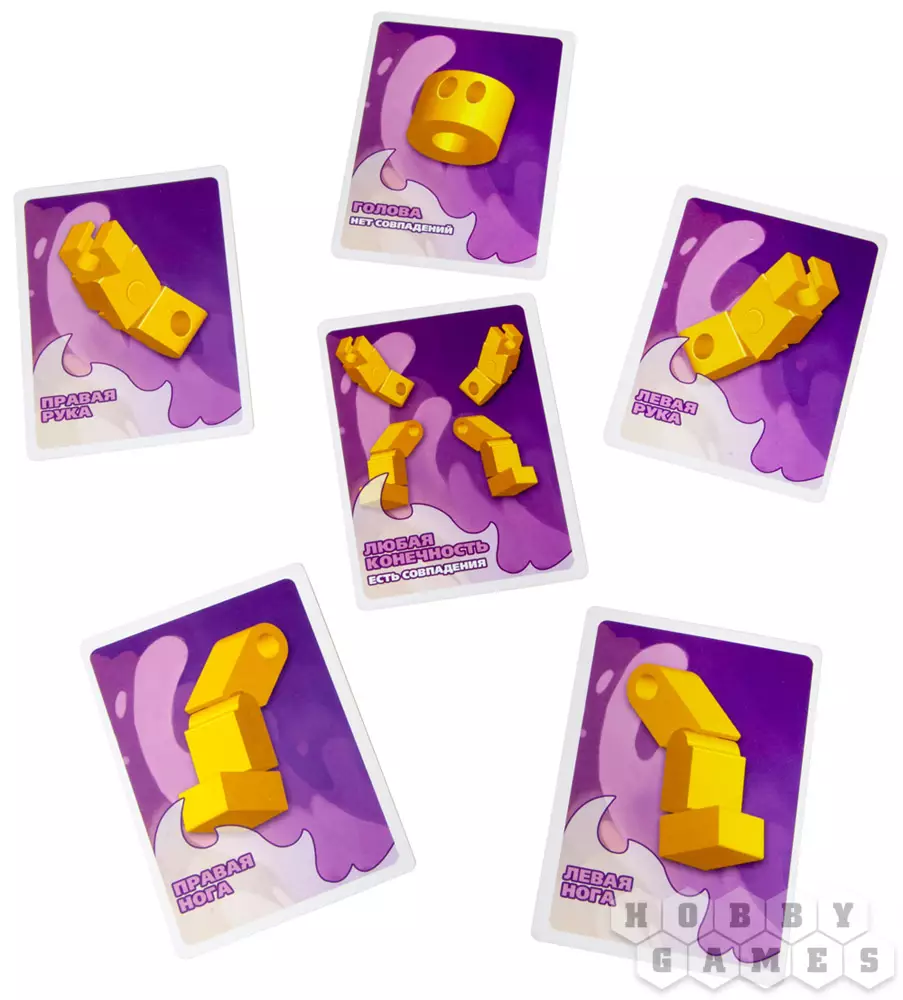 В начале игры каждый игрок выбирает себе своего робота-пирата и забирает все карты соответствующего цвета. Выложите фигурки роботов в одну линию друг за другом, а фигурку акулы – замыкающей, теперь можно начинать игру!